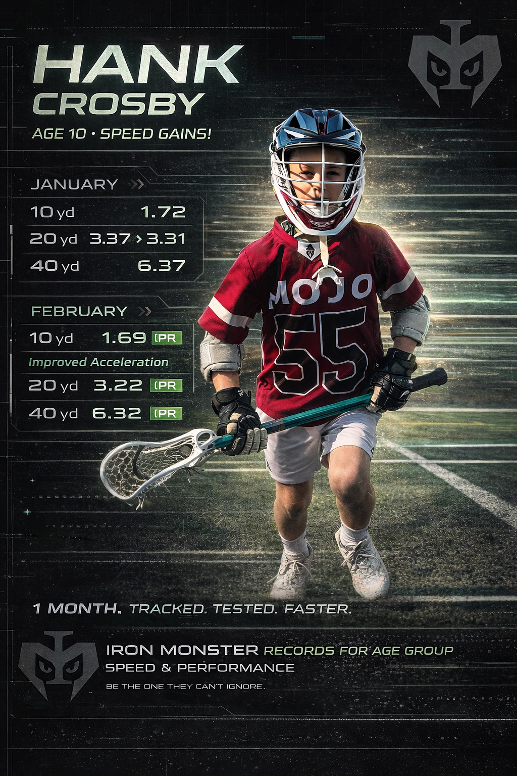 My son has been training with Tony Streeter for about 2 years. Not only has Tony trained him in speed and the fundamentals that go with that, he has been a role model. The impact of the training shows itself in my son’s sports and his attitude about training and working hard. I highly recommend Iron Monster for any sports speed and agility and position training!
